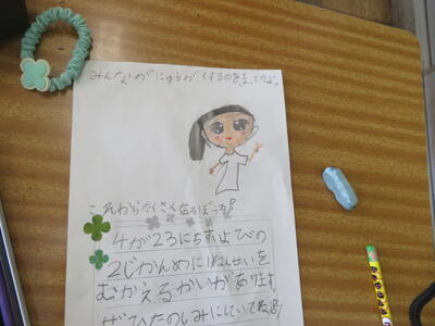 昨日の代表委員会で話し合われた1年生を迎える会を受けて、さっそく2年生が招待状の準備に取りかかっていました。1年生の皆さん、楽しみにしていてください。