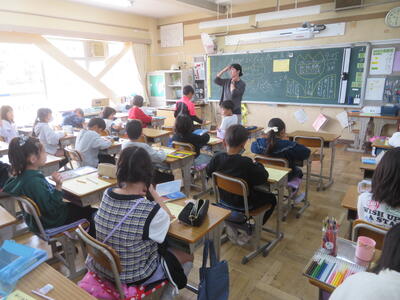 4年生は自己紹介カードをかいていました↓