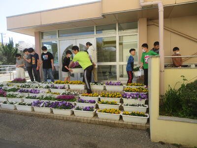 10日(木)は入学式でした。温かな春の風が気持ちよく、絶好の入学式日和でした。たくさんの花たちが、1年生の入学をお祝いしているようでした。