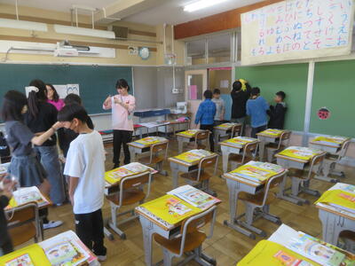 いよいよ明日は、入学式です。6年生が式場や教室の準備をしてくれました。1年生が入学してくるのが楽しみです。
