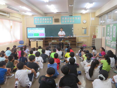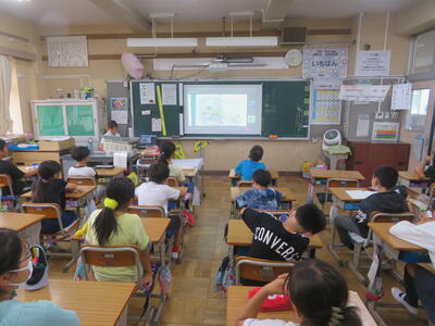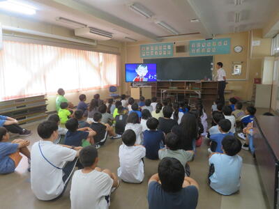 10日(水)の1~4時間目に、それぞれ3~6年生を対象としたネットモラル授業を行いました。インターネットを通じて起こる事件から自分や他人の身を守り、安全・安心な状態でインターネットを活用できるようになる素地を養うことを目的として行いました。講師の先生から、SNSの便利さだけでなく危険性も教えてもらい、目的を持って使うことが大切だと教えていただきました。