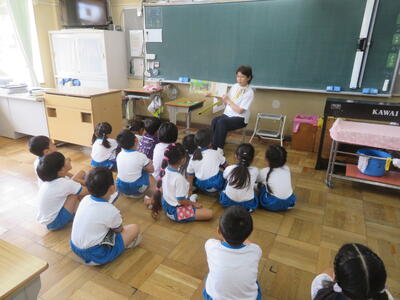 火曜日の朝読書の時間に、1ヶ月に1回程度、お話ダンボの皆様が、子どもたちに読み聞かせをしてくださっています。本を選んだり、読む練習をしたりとこの日のために準備してくださっています。教室の前でも本の内容をもう一度確認している方もいらっしゃいます。子どもたちにとって様々な本の世界と出会うことは心の栄養になります。もうすぐ夏休み。お話ダンボで広がった本の世界を夏休みにさらに広げてほしいと思います。