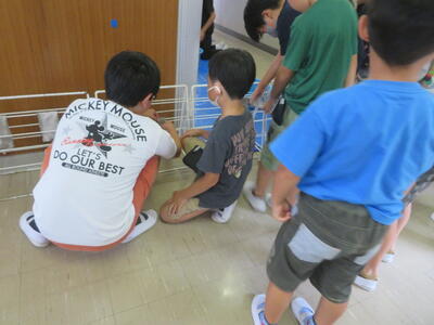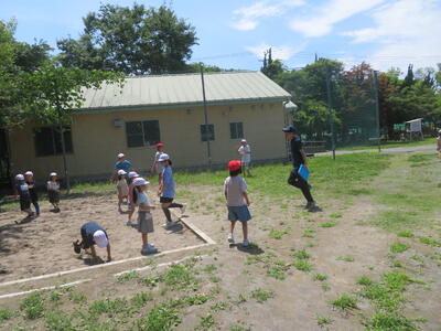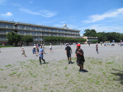 3日(水)は2回目のなかよし活動でした。1回目は暑さが厳しく室内での活動でしたが、今日は、この間に比べれば、風もあり、幾分暑さも和らいでいたように感じました。ドッジボール、どろけいなどの遊びを異学年で楽しんでいました。