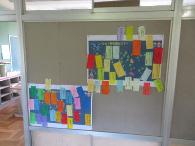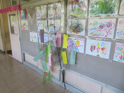 7月7日は七夕です。今日(5日)の給食も星の形のにんじんが入った五目ずしや七夕すましそうめん汁、星の形のナタデココが入った七夕ゼリーと七夕づくしでした。低学年の廊下には笹が飾られ、短冊に願い事が書かれています。皆の願いが叶いますように。