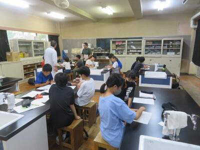 理科室では自由研究のテーマの探し方や進め方などを教わりました↓