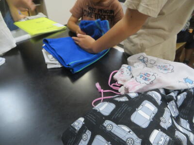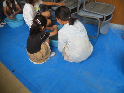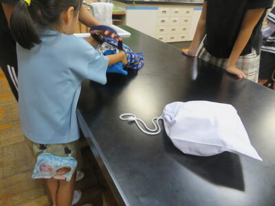 10日(水)の1,2時間目に6年生が家庭科の「洗濯」の学習で学んだ、しぼり方やたたみ方などを1年生に教える学習を行いました。ぞうきんをしぼる、ぞうきんかけにかける、体操服や白衣をたたむ、など学習で身につけた知識や技能を1年生のために発揮していました。