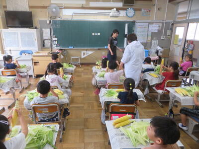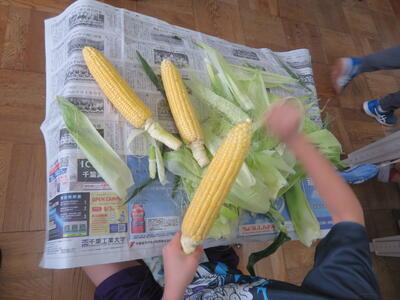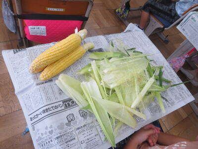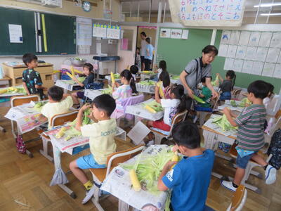 とうもろこしの皮むき(1年生)