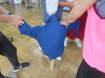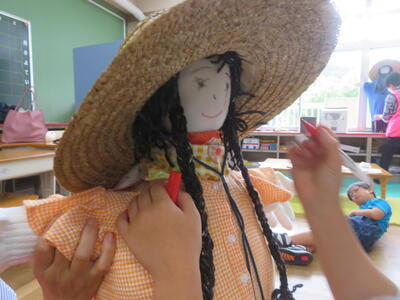 なのはな学級と逆小スマイルで、お米や落花生づくりに取り組んでいます。どちらもすくすく育っていて、今から収穫が楽しみなところです。楽しみにしているのは人間だけではありません。鳥等の動物たちもお米や落花生ができるのを待っています。そこで、夏休みを前にかかしづくりに取り組みました。おなかにわらをつめ、服を着せて、顔を描いてと素敵なかかしができあがりました。