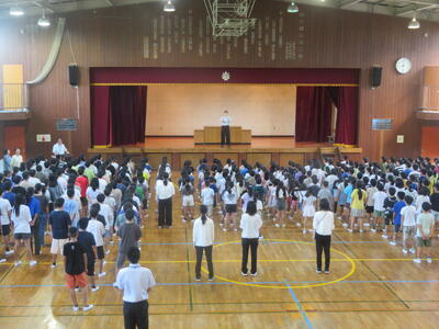 18日(水)の昼休みに学級委員任命式を行いました。3,4,5,6年生の各クラスの2学期学級委員が、校長先生から任命書を手渡されました。2学期も、明るく楽しい学級づくりをお願いします。