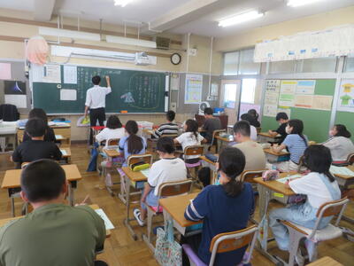 2学期が始まって2週間。まだまだ暑い日が続いてます。体育の授業や昼休みの外遊びなどは、暑さ指数(WBGT)を確認しながら実施しています。今日の1時間目は、4年生が校庭でタグラグビーの学習を行いました。3年生の時も実施し、子どもたちもタグラグビーの学習を楽しみにしていたようです。