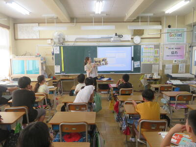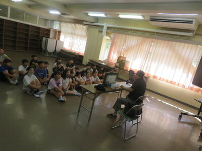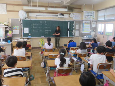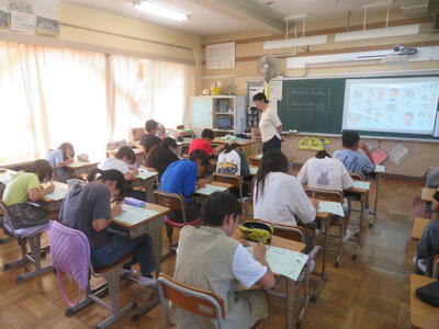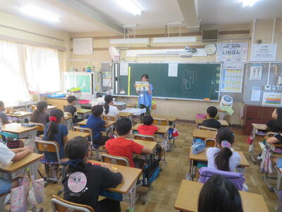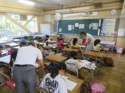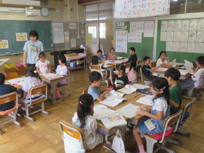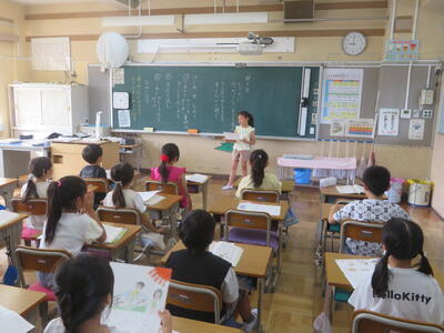 1,2年生は教室で夏休みの出来事の発表会を行っていました↓