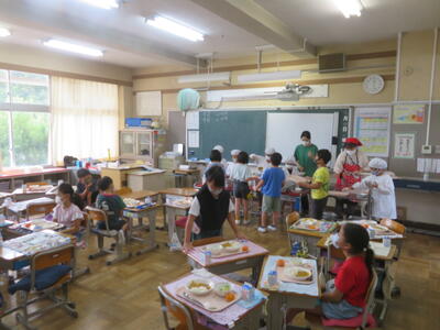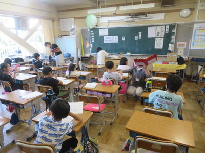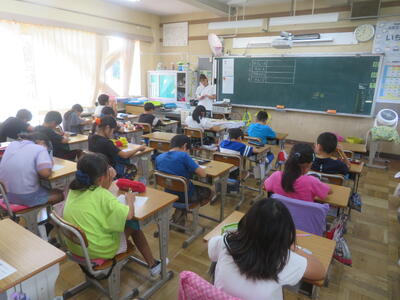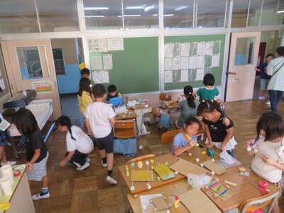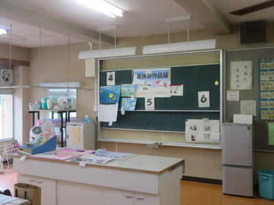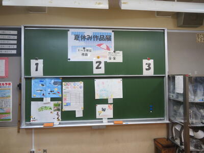 4日(水)と5日(木)に夏休み作品展を開催しています。展示場所は、理科室と家庭科室です。児童用の昇降口から入っていただき、1階廊下を通って展示場所までお進みください。時間は9時から12時、13時40分から16時となります。子どもたちの力作をぜひご覧ください。