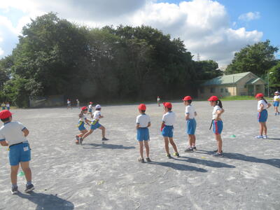 タグ取りおにごっこ、チームで作戦を立てて実施します↓