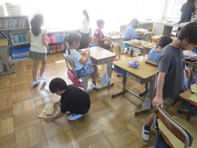 18日(水)に1年生が生活科の学習で虫探しを行いました。逆井小学校の周りには、たくさんの昆虫たちがいます。虫取り網、虫かごを持って、1年生が一生懸命、虫を探していました。うまく捕まえられて人もそうでない人もいたようですが、皆、楽しく虫と戦っている姿がとても微笑ましかったです。