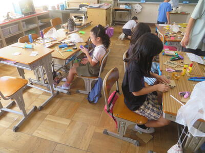 17日(火)に2年生が、生活科の学習でおもちゃづくりを行いました。ゴムロケット、ジェットカー、かいじゅうスピーカー、ぴょんぴょんかえるなど手作りで楽しめるおもちゃを一生懸命作っていました。できあがったおもちゃを試して遊ぶ姿もありました。この学習で作ったおもちゃで、1年生と一緒に遊ぶ計画があるようです。今から活動が楽しみです。