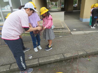 「つぼみができた」「花が咲いた」と楽しませてくれた朝顔は、最後まで子どもたちを喜ばせてくれました。