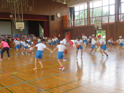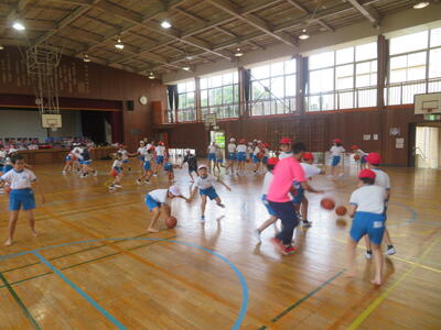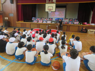 25日(金)の3,4校時に5年生を対象とした千葉ジェッツふなばしの学校訪問出前授業がありました。千葉ジェッツの紹介から始まり、手つなぎドリブルでボールを取り合ったり、クラス対抗でシュートゲームをしたりしました。どの子もバスケットボールに興味を持てたようです。