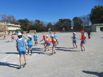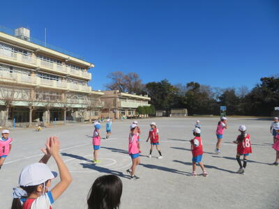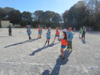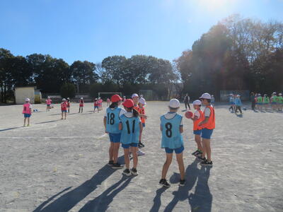 17日(火)に4年生が体育科で取り組んできたセストボールの学習のまとめとして、学年で大会を開きました。パスをつないでボールを運び、ゴールで待っている味方にパスがわたると1点です。チーム全員が得点すると、ボーナス得点も加わります。チームで練習したり、声をかけ合ったりしながら、勝利のために頑張っていました。