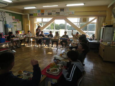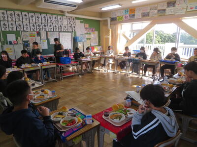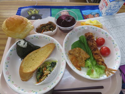 20日(金)は、6年生だけ特別なバイキング給食です。タンドリーチキンと一口かつのどちらか、エビフライとサケのピザソース焼きのどちらかなど、メニューの何種類かを選び、自分の献立を作ります。いつもとは違う盛り付けに6年生も興奮していました。