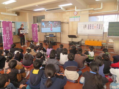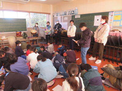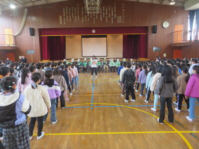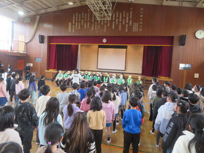 3日(月)に全校集会を行いました。2月の生活目標は「ありがとうの気持ちを伝えよう」です。全校集会の後は、登下校の見守りをしてくださっている「エビネ隊」の皆さんと、朝の読み聞かせを担ってくださっている「お話ダンボ」の皆さんをお招きして、感謝の会を開きました。普段お世話になっているボランティアの皆さんに声を出して「ありがとう」と感謝の気持ちを伝えることができました。