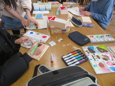 19日(水)に版画教室を行いました。初めて彫刻刀を使って木版画に挑戦することもあり、彫刻刀の使い方から彫り方まで丁寧に教わりました。最初は恐る恐る彫っていましたが、だんだんと彫刻刀をスムーズに使えるようになりました。