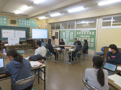 逆井小学校では、校内授業研究会を定期的に行っています。これは、先生たち同士で授業を見合い、それを基に協議することを通して先生たち一人一人の授業力の向上を目指して行うものです。今年度、最後の授業研究会を10日に行いました。多くの先生たちに囲まれて子どもたちも少し緊張した様子でしたが、生き生きと活動してくれました。