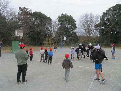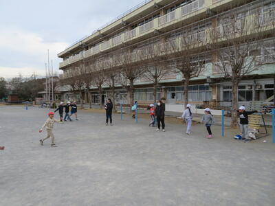 3学期の体育科の学習で3年生はタグラグビーに取り組んでいます。初めてラグビーをする子がほとんどでしたが、だんだんとうまくなってきました。タグをとられて、パスを出す。ボールを持ったら前に進む、そういった動きがとてもスムーズでした。ゲームの形になるのももうすぐです。