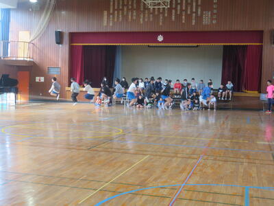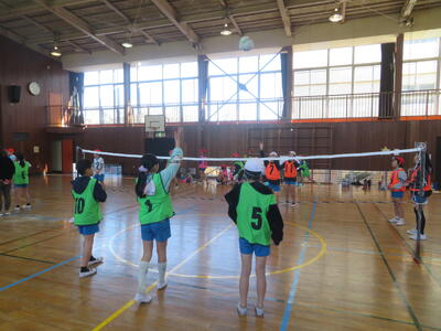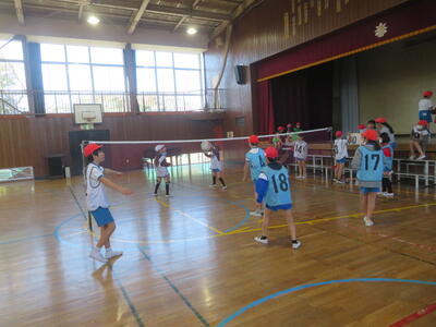 4年生は、3学期の体育科でキャッチバレーボールを学習しました。これは、バレーボールとルールは変わりませんが、一つ違うのは、ボールをキャッチするというところです。相手からのボールを跳ね返すのではなくてキャッチして、自分たちのボールとし、それを投げて、アタックを打って得点を重ねていきます。体育館は4年1組、2組ともに勝利を目指して熱が入っていました!