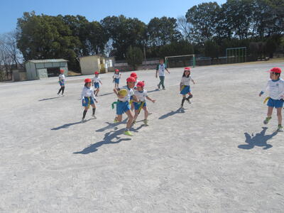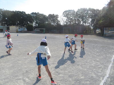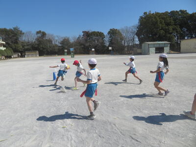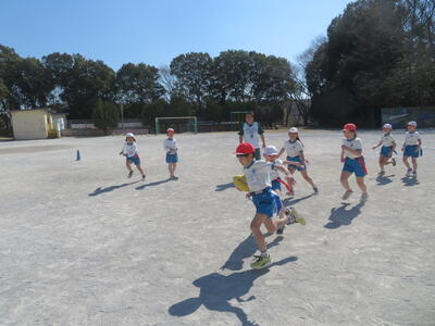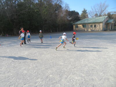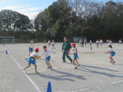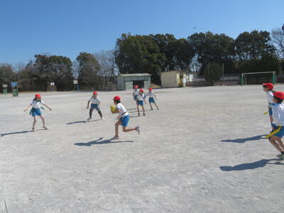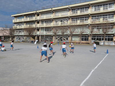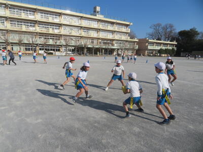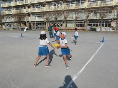 3学期の体育科の学習で3年生はタグラグビーに取り組んでいます。初めてラグビーをする子がほとんどでしたが、だんだんとうまくなってきました。タグをとられて、パスを出す。ボールを持ったら前に進む、そういった動きがとてもスムーズでした。ゲームの形になるのももうすぐです。