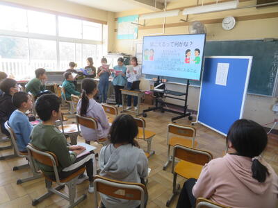 4年生は福祉の学習で調べたことを発表しました↓