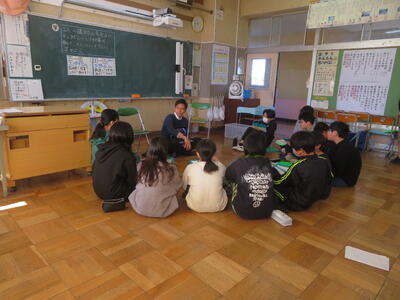 6年生はこの1年間、総合的な学習の時間に「仕事」や「夢」について考えるキャリア教育を実施してきました。卒業まで約2週間となり、最後に、eboardにお勤めの方をお招きして話を聴きました。「夢って変わっていいと思っています」「今も夢があります」「今の自分を大切にしてほしいです」など、6年生の子どもたちの車座になったお話は子どもたちの心にも響いたのではないでしょうか。