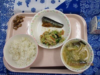 牛乳 ごはん 鰯の甘露煮 切り干し大根のごまあえ じゃが芋のみそ汁