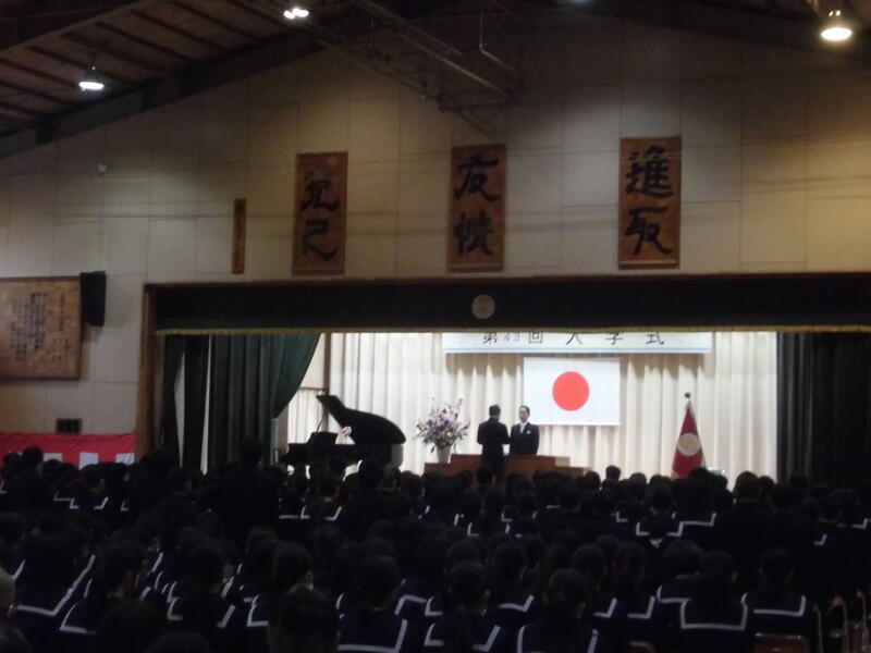 保護者の皆様、教職員、学校運営協議会の皆様に見守られ、新入生は緊張した面持ちもありながら、立派に式に参加しました。