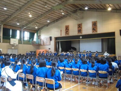今回は感染症拡大の懸念が小さいことから体育館で実施しましたので、校歌の全校合唱があり、生徒達の元気な歌声に励まされとても嬉しく感じました。