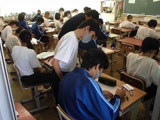 初めての試みですので、教師側は緊張感をもって丁寧に説明していましたが、生徒達はタブレット使用にも慣れたものでトラブルなく実施していました。逆井中生徒の順応性の高さと、集中力を感じました。