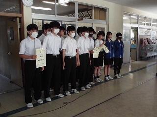定期テスト明けの今日、春季大会等の表彰集会を実施しました。部活により開催日は異なりますが、3月のソフトテニスに始まり、現在まだ続いている部活もあります。私も時間の許す限り応援に行かせてもらっていますが、勝っても負けても生徒達が一生懸命に頑張る姿には勇気と感動をもらえます。