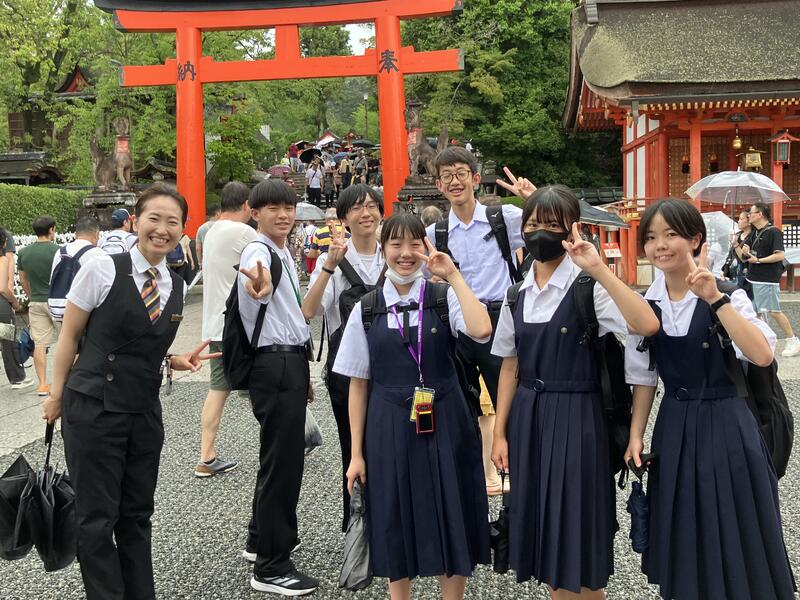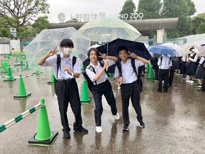 修学旅行2日目、曇天たまに小雨の中、全班出かけて行きました。
