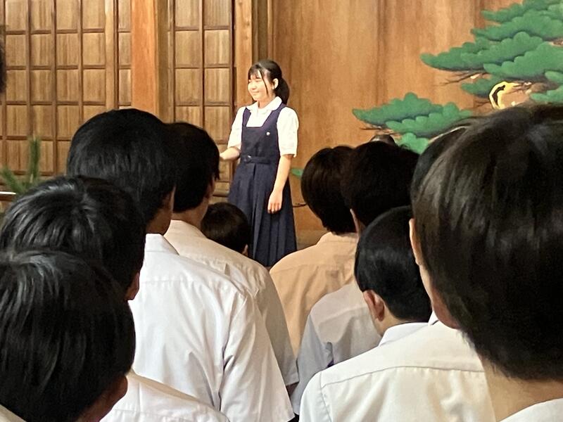 今日は、後期生徒会役員を選出するための立会演説会と選挙が行われました。暑さ対策でリモート配信による実施です。会計候補から生徒会長候補まで15名の立候補者と、同数の応援責任者が演説をしてくれました。リモートと言えども全校生徒の前で話すことは、生徒にとってかなりハードルが高いと思われますが、皆堂々とした話しっぷりでした。 自分よりも学校のことを優先して考えてくれる献身的な姿勢、学校を良くしようという意欲、皆の前で話す勇気、すべての発表者を称えたいと思います。