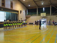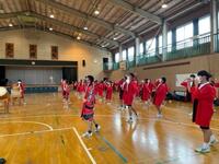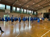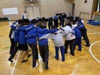 当日朝、体育館で円陣を組み、気持ちを1つに。