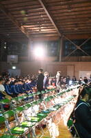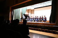 続いて1学年の発表、成人式を迎えた卒業生が中学当時に戻り、当時を振り返る構成です。笑いあり、涙ありの発表で学年全員による合唱も大変感動的でした。