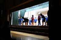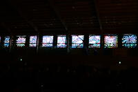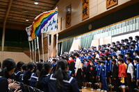 次に2学年の発表、3年間の様々なシーンを先生方に扮した生徒も交えたユーモアのある回想シーンが演じられ、林間学校の花火の場面では、体育館窓に美しく装飾されたステンドグラスが披露されました。最後は学年での合唱です。