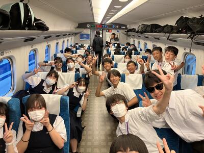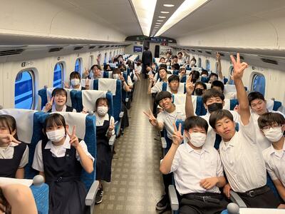 修学旅行初日② 投稿日時 : 2024/06/22 逆井中学校管理者 新幹線が発車すると「おー、動いたー‼️」と歓声が、乗車中も「富士山見えるー」「河川敷じゃん」「シートが回るー」と、そこここで楽しげな声が上がっています。生徒達楽しそうです。 {{options.likeCount}} {{options.likeCount}}