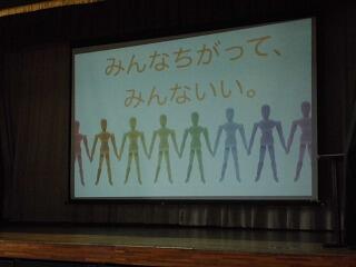 「ひととちがっても いいんだよ」「相手の気持ちになってみること」等の言葉がとても印象的でした。始まったばかりの中学校生活ですが、一人一人が今日の講演内容を心に刻み、仲間意識を高めていけるとうれしいなと思います。
