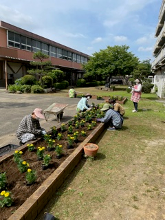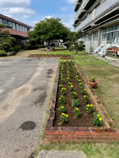 6月13日に子ども・学校支援ボランティア十色咲かそう会の皆様に、中庭や正門、裏門周辺の花壇の整理と花植えを行っていただきました。ありがとうございました。地域の方々にたくさんの御支援をいただき、なんとか地域貢献したいと考えております。まずは、伝統的に行ってきた、地域行事への協力から再開できればと思います。よろしくお願いいたします。
