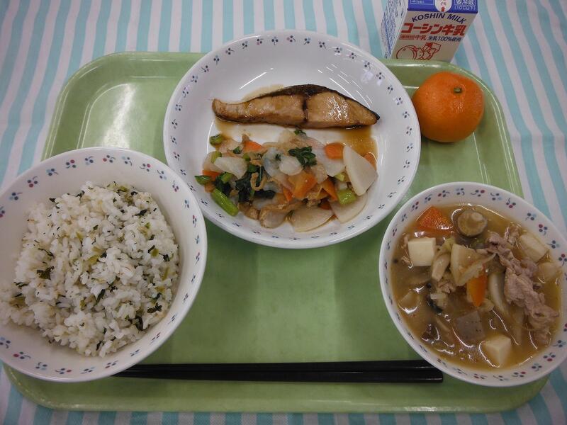 一覧へ 七草御飯 日時 2026年01月08日(木) 公開対象 給食の献立 詳細 牛乳 七草御飯 いなだの照焼き かぶの酢の物 豚汁 みかん 作成者 逆井中学校管理者 更新日時 2026-01-08 11:45:19