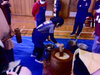 ふれあいもちつき大会が行われました。「みんな集まれ柳の木」の方々の協力のもと、なかよし、すくすく学級、6年生が参加しました。初めて餅つきをする人も多く、楽しそうに取り組みました。餅つき後にはつきたての餅をいただきました。つきたてで、温かくとてもおいしくいただきました。おかわりをたくさんする人もいました。「みんな集まれ柳の木」の方々、ありがとうございました。