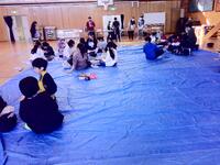 スタンプを全部集めると「たいいくかん」という言葉になり、体育館へ行くと、ミッションコンプリートの特別スタンプをもらえることができます。特別スタンプは「たかやん」でした。スタンプをもらえると喜ぶ姿が見られました。