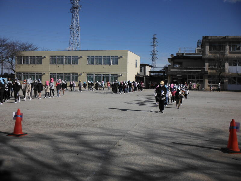 延期が続いていた避難訓練を実施できました。全校で校庭に出たのは,
