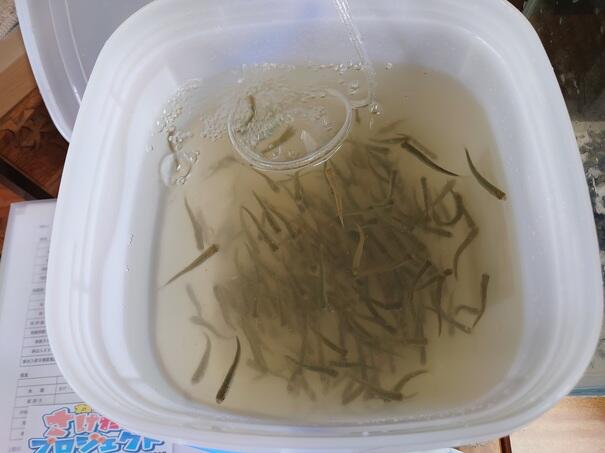 ずいぶん大きくなり,えさもいっぱい食べます。やなぎっ子は,水そうをよくのぞいています。