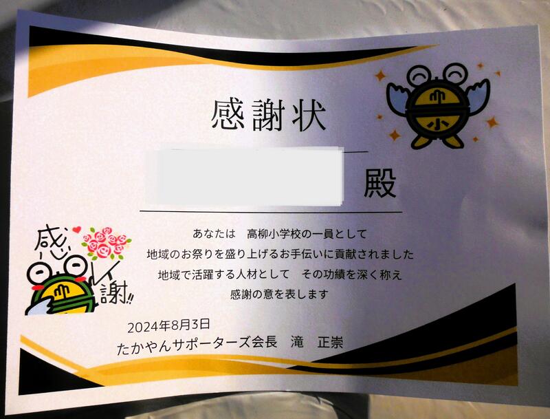 どうか高柳の地域への恩返しができる人になってほしいと願っています。そし何よりも親孝行ができる人に